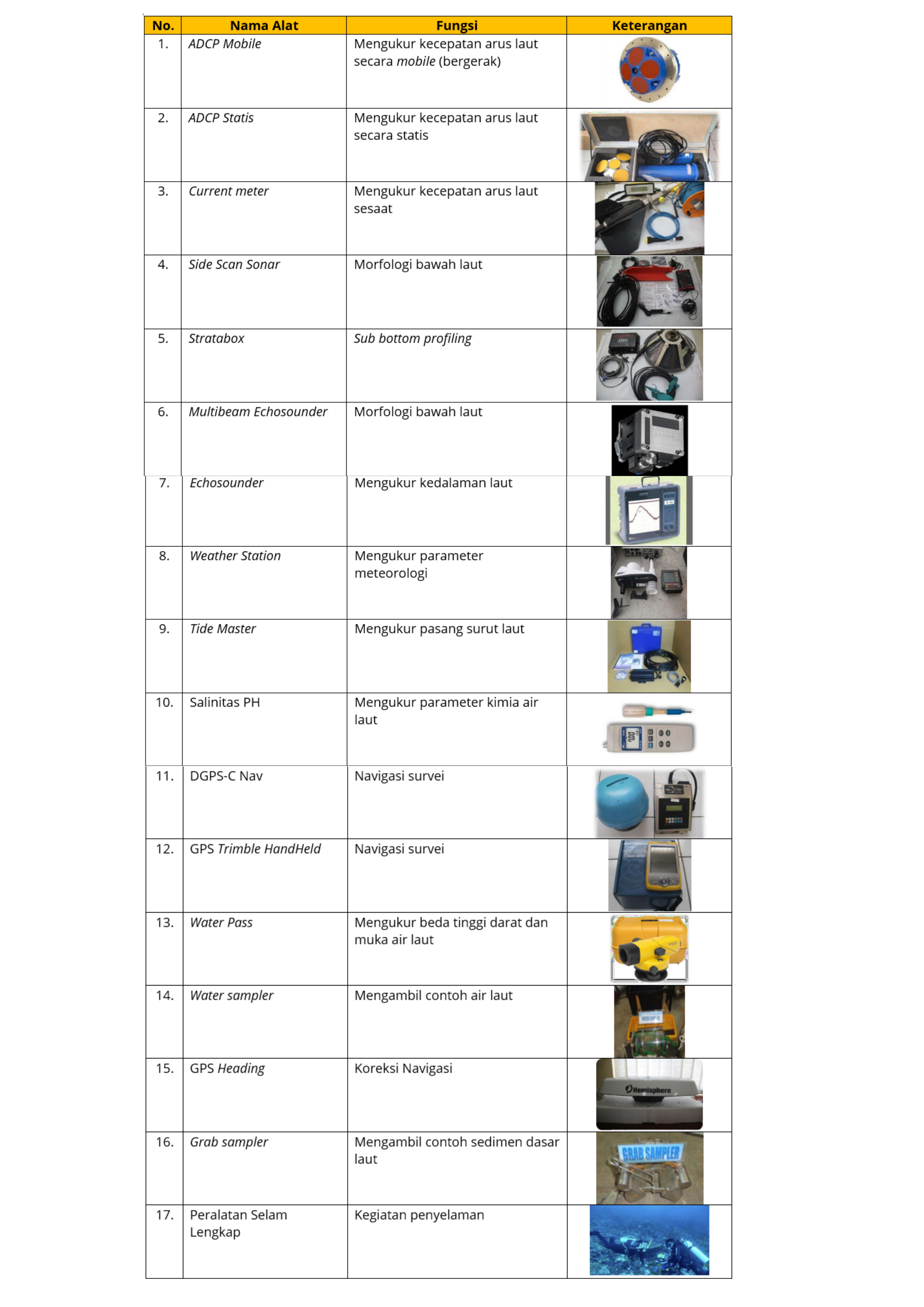 Tabel 1. Daftar Peralatan Survei yang Digunakan