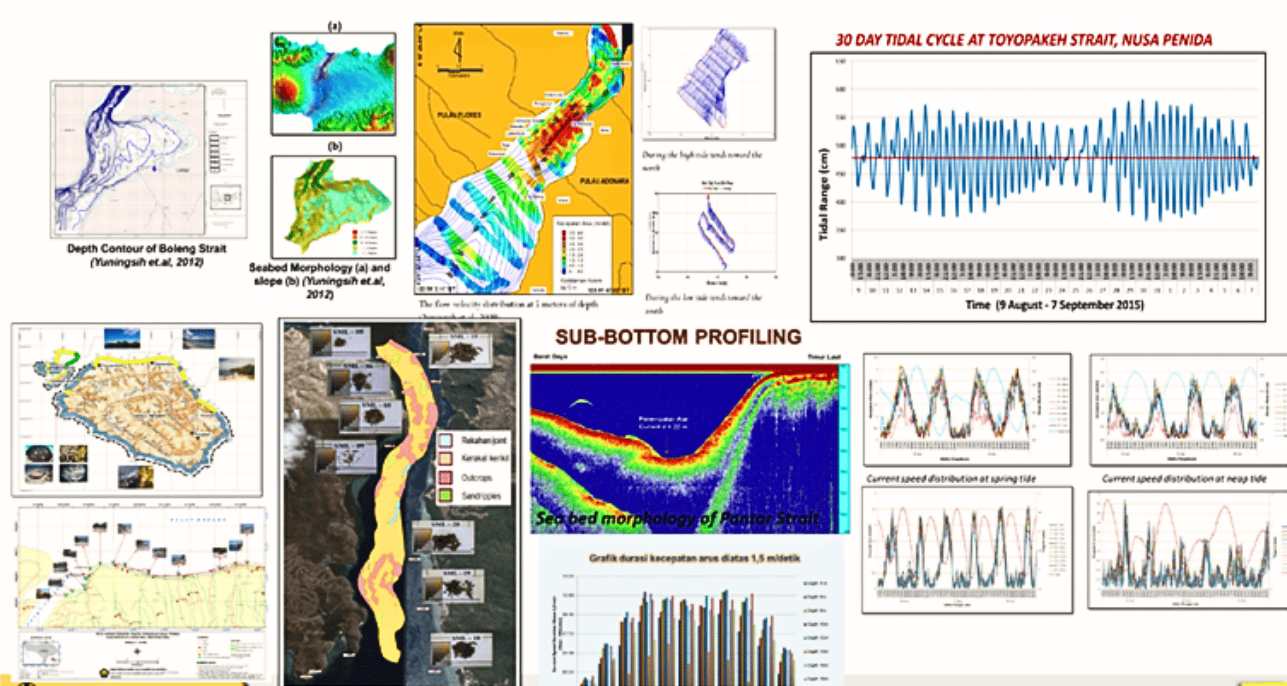 Data lapangan hasil pengukuran kemudian digunakan untuk mendapatkan nilai potensi dengan menggunakan pemodelan numerik yang tervalidasi dengan baik dan dituangkan dalam peta potensi arus laut.